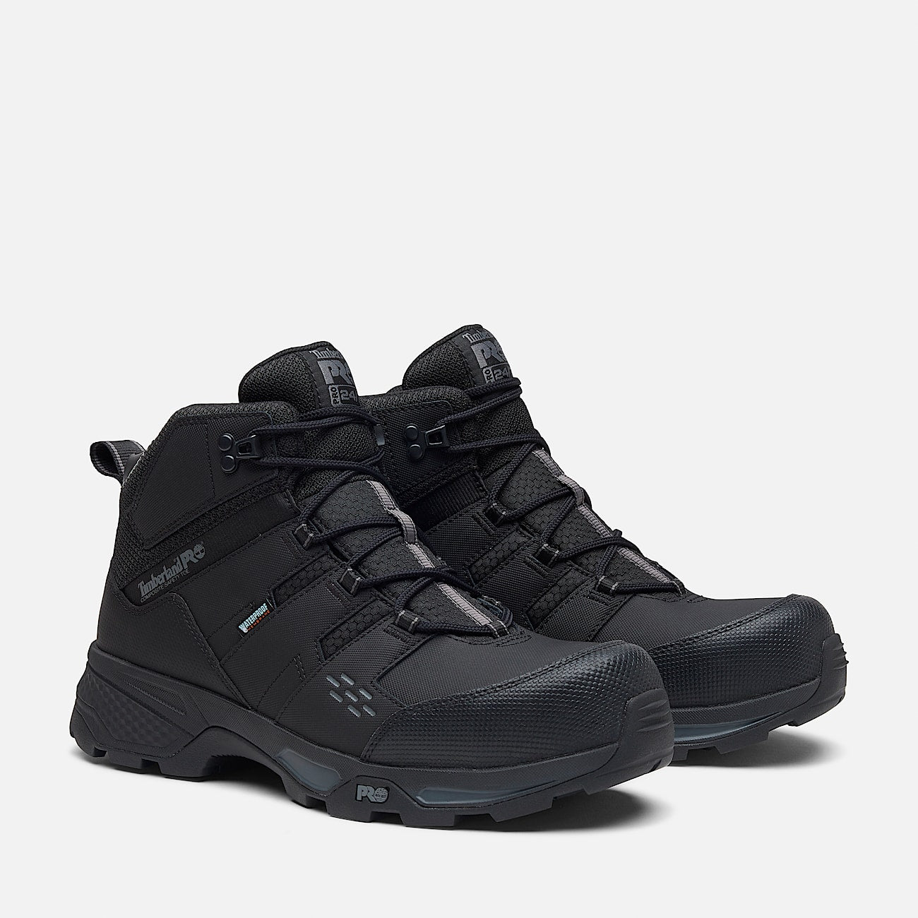 Timberland Pro's all-purpose, waterproof Switchback men's work boots are ruggedly built for demanding work where your safety and comfort are key. They combined composite safety toes with electrical hazard protection and their Anti-Fatigue Technology footbed that helps absorb shock and returns energy back to your feet so you can tackle the toughest days on the job. Their coated waterproof leather uppers help offer abrasion resistance from above, while an internal waterproof membrane helps provide waterproof protection and blood-borne pathogen resistance. There's also a breathable, moisture-wicking lining made of ReBOTL™ material containing 50% recycled PET plastic, flexible cement construction, a fiberglass shank for structural support, and a GripMax Ice outsole designed for traction on wet ice surfaces.