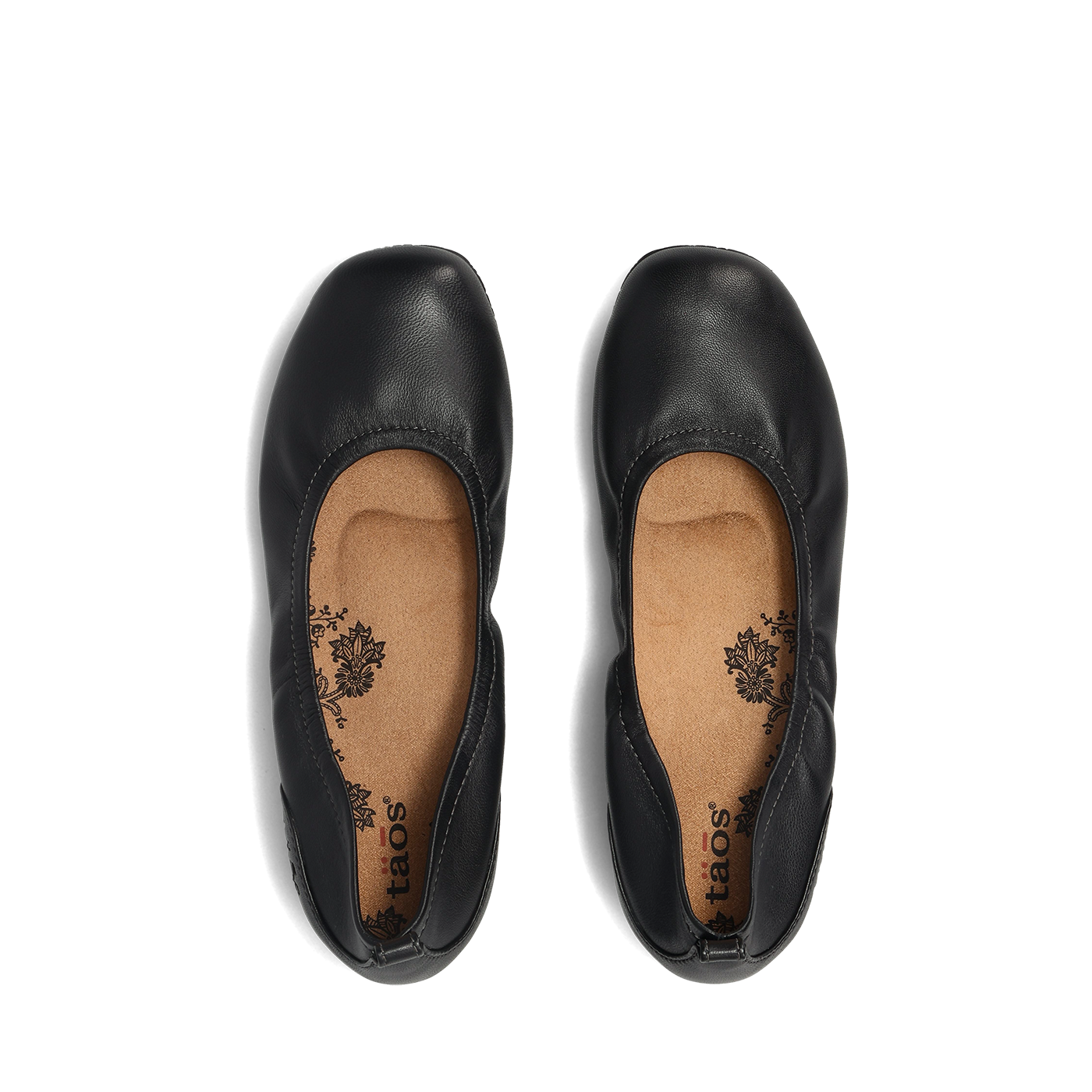 The NEW Chit Chat is the perfect skimmer flat for both day and night! The classically clean lines, a gentle elasticized topline and a flattering toe character combine with Taos' Curves & Pods® removable arch support footbed to delight you in style and support. The tread on the outsole at the forefoot and heel helps traction and the rubber outsole is both flexible and durable.