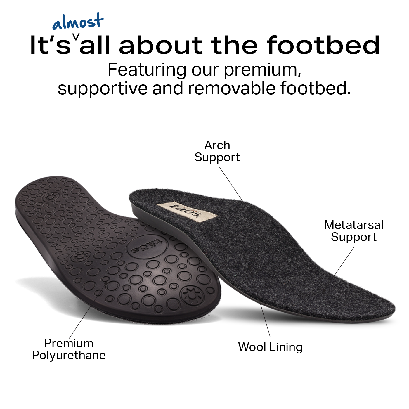 Taos' slip on wool "convertible" called Convertawool, has a moc toe-like seam on the toe, and a seam on the heel, giving a distinct European look, with a collapsible back, turning this shoe into a clog, effortlessly! Italian wool, offering exceptional quality, is fabulous and features a removable footbed, arch & metatarsal support, covered in wool that is natural and breathable. The TR, cork blended outsole is extremely lightweight, flexible, and durable. Whether you wear it as a shoe, or collapse the back and wear it as a clog, you will love the versatility of Convertawool!